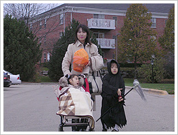 秋;紅葉の季節ですが、ほとんどの落葉樹の葉っぱは黄色くなります。湖に映る森の黄色が非常に美しく、本当に絵画のようです。晩秋にはハローゥインと感謝祭があります。我が家のガールズも近所の子供たちと「Trick or Treat」と言って、沢山のお菓子をもらって来ました。感謝祭は生涯の恩師であるMontgomery先生宅に招待されました。私たち家族はMontgomery先生と奥様(心理学の教授です)に暖かくもてなしていただきました。