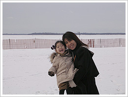冬;家内が最も嫌いな季節ですが、私はそうでもありません。でも寒さは半端じゃありません。滞在中の2004年の冬は、雪こそ少なかったのですが最低気温が氷点下20度を下回る日が多く、貴重な経験をしてきました。愛用の携帯電話を外で使うと、金属部分が耳にくっついてしまい無理にはがすと出血します。電話を耳につけたまま自然解凍を待つしかありません。鼻息がすぐに凍りつきます。大きな湖も完全に凍ってしまい、車で渡れます。私は北大時代に札幌に6年間住みましたが、こんなことはありませんでした。すごいです。