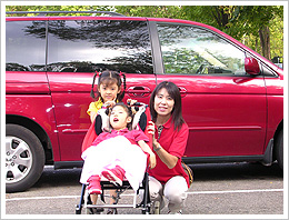 その次は車です。アメリカの場合大都市以外は公共の乗り物が発達していませんから、車がないと牛乳1本手に入れるのさえ大変です。アパートの管理人さんのご主人がディーラーに勤めているとのことで、紹介してもらいました。Mayoの時のあの事件がありますし、今度は子供たちもいます。高くつきますが安全も考慮し、しかも長女の車椅子が積めるように新車のミニバンを買うつもりでしたので、Honda Odyssey(日本名ラグレイト、アメリカではハンダ アーディセィと発音します)の赤(次女が赤い色が好きだから)を買いました。私にはアメリカでのクレジットヒストリーがありませんから、渡米していきなりローンを組むことはできません。しかしディーラーの担当の方は身分証明書のMDを見てローンも可能とすすめてくれました。でもローンの金利もそこそこありましたから、私はキャッシュで買ってしまいました。前回もそうでしたが、アメリカでの車の売買は非常に簡単です。「これを下さい。」「はいどうぞ。」っていう感じで、八百屋さんでネギを1本買うようなものです。それにしてもミニバンは快適でした。