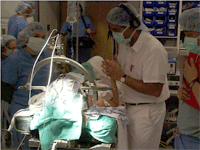 1〜2時間で終わります。勿論2回に分けないで一度にやってしまっても良いのですが、1回目の手術でパーキンソン病の患者さんは相当疲れてしまっています。その状況で更に全身麻酔というのは負担が大きすぎます。そしてもう1つ重要なことは、電極を正しく挿入しただけでも症状が一時的に良くなりますから、電極挿入・留置手術の適切性を観察できるという点です。アメリカでは2回目の電池を入れる手術は1回目の術後約2週間で行なっていましたが、勿論患者さんの状態が良ければ電極留置時に同時に行っても問題はありません。| ▼ ▼ |